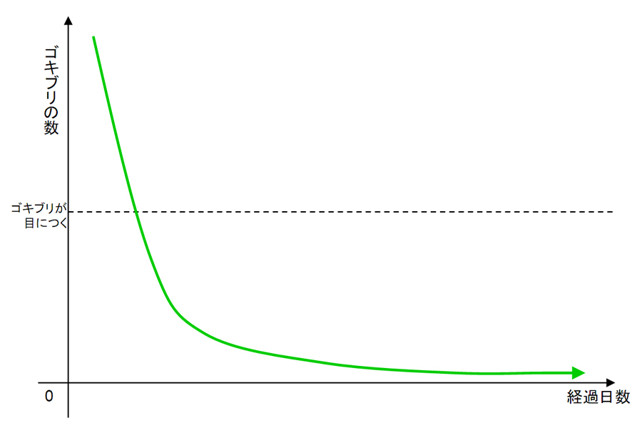 卵や、あとから侵入してくるゴキブリにはもちろん効果はありませんので、徐々に増えていきます。